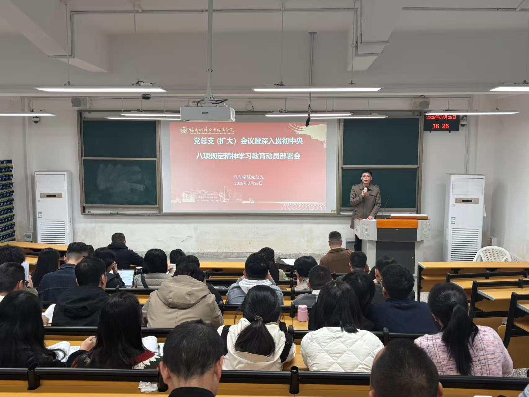 3月28日,汽車學院黨總支(擴大)會議在汽一階教室召開。會議認真學習貫徹習近平總書記關于深入貫徹中央八項規(guī)定精神學習教育的重要講話和重要指示精神,傳達校黨委(擴大)會議暨深入貫徹中央八項規(guī)定精神學習教育部署會會議精神,布置學校學習教育工作方案,并動員部署學習教育工作。會議由學院黨總支書記蔡華錦主持,全體黨員參加會議。