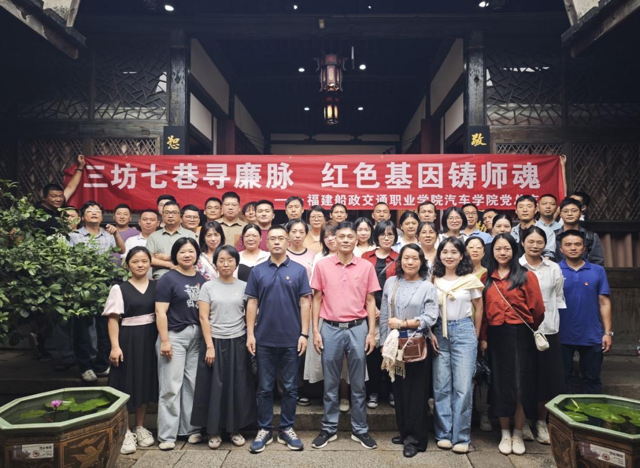 為深入貫徹中央八項(xiàng)規(guī)定精神,筑牢黨員教師廉潔自律思想防線,傳承紅色基因,福建船政交通職業(yè)學(xué)院汽車學(xué)院黨總支于202564日組織全體黨員教師,赴三坊七巷開展“三坊七巷尋廉脈,紅色基因鑄師魂”學(xué)習(xí)教育現(xiàn)場(chǎng)教學(xué),先后參觀了三坊七巷歷史人物勤廉館與中共福州市委革命歷史陳列館。