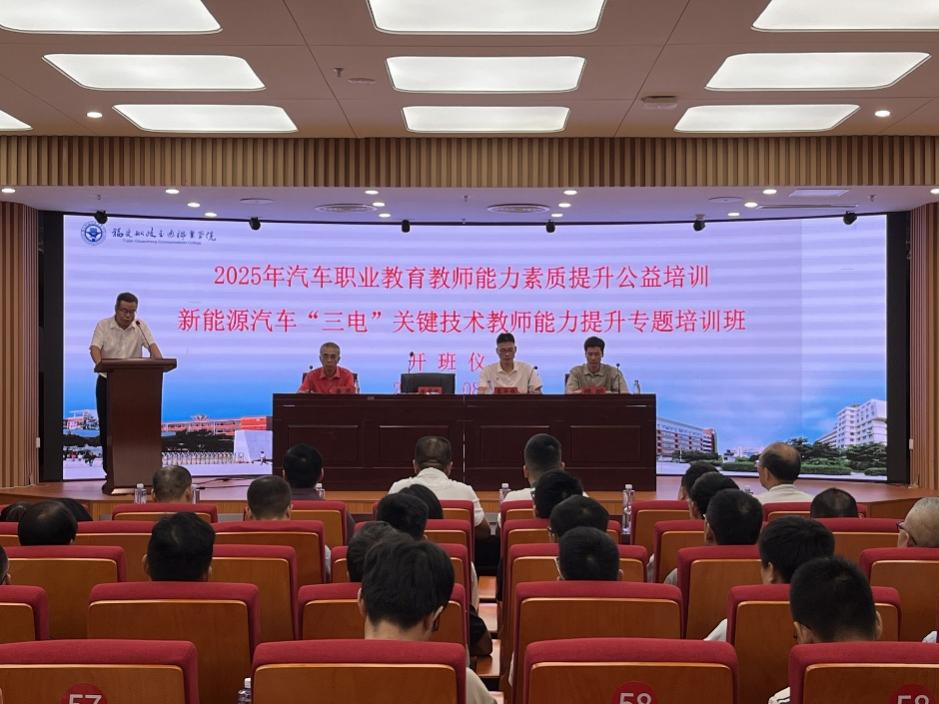 為落實《教育強國建設(shè)規(guī)劃綱要(2024—2035年)》文件精神,提升“雙師型”教師隊伍建設(shè)水平,進一步推動汽車職業(yè)教育高質(zhì)量均衡發(fā)展。由福建船政交通職業(yè)學院主辦的2025年汽車職業(yè)教育教師能力素質(zhì)提升公益培訓班暨2025年福建省專業(yè)技術(shù)人才知識更新工程高級研修班于8月20日正式開幕,本次培訓旨在順應汽車產(chǎn)業(yè)變革趨勢,推動新能源汽車技術(shù)普及與人才隊伍建設(shè),吸引了來自全國中、高職院校汽車專業(yè)的專業(yè)帶頭人和骨干教師、全省行業(yè)技術(shù)骨干及省內(nèi)各地市機動車維修行業(yè)協(xié)會會長等75人參加培訓。