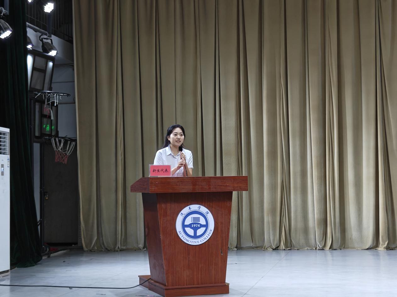 隨后,新生代表孫靜文發(fā)言。她滿懷激動(dòng)與憧憬,分享了自己對(duì)大學(xué)生活的期待,表達(dá)了與同學(xué)們共同努力、在汽車學(xué)院追逐夢想的決心,展現(xiàn)出新生們蓬勃的朝氣與積極向上的精神風(fēng)貌。