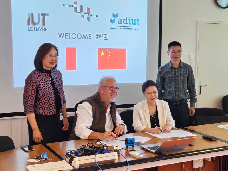 代表團(tuán)與諾曼底勒阿弗爾大學(xué)校長佩德羅·拉格什·多斯桑托斯Pedro Lages dos Santos及國際發(fā)展部負(fù)責(zé)人蒂埃里·塔貝利翁Thierry TABELLION等舉行會談,就雙方師生互訪、教科研合作,特別在港口與海洋產(chǎn)業(yè)人才培養(yǎng)合作方面達(dá)成共識,并簽署校際合作備忘錄。