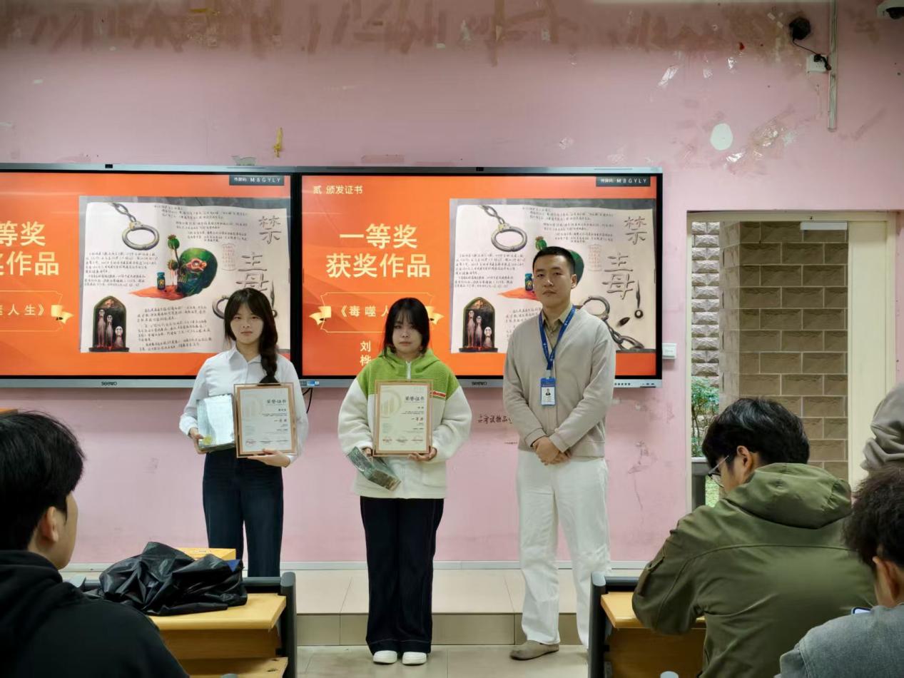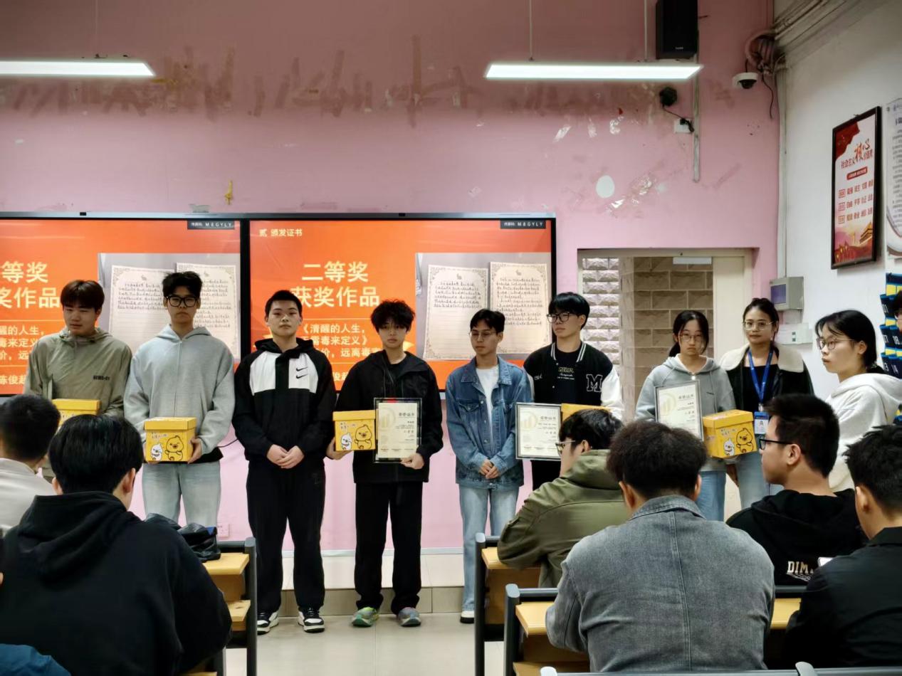 活動(dòng)期間,累計(jì)收到作品28幅,禁毒作品內(nèi)容豐富,涵蓋了手抄報(bào)、繪畫、短視頻等多種形式。經(jīng)嚴(yán)格評(píng)審,2025年11月4日中午12:00,本次禁毒作品征集活動(dòng)暨頒獎(jiǎng)儀式在自強(qiáng)樓1-3教室隆重舉行,汽車學(xué)院輔導(dǎo)員、學(xué)生干部獲獎(jiǎng)?wù)呒鞍嗉?jí)代表共計(jì)84人出席了儀式。