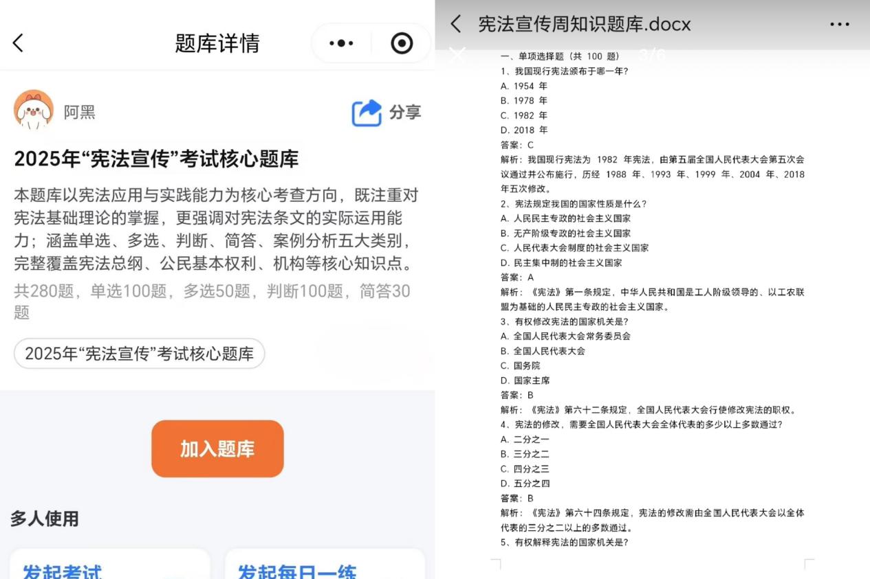 12月1日當(dāng)天,汽車學(xué)院以線上答題平臺(tái)為依托,圍繞憲法基礎(chǔ)知識(shí),涵蓋憲法的歷史沿革、基本內(nèi)容、公民的基本權(quán)利和義務(wù)、國(guó)家機(jī)構(gòu)以及學(xué)生學(xué)習(xí)生活、汽車行業(yè)相關(guān)的法律法規(guī)等方面,組建知識(shí)答題題庫(kù),設(shè)置了單選題、多選題、判斷題等多種題型,同時(shí)針對(duì)易錯(cuò)題還增設(shè)了答案解析,有效幫助廣大同學(xué)深化對(duì)憲法內(nèi)容的理解,共計(jì)133名同學(xué)參加了答題活動(dòng)。