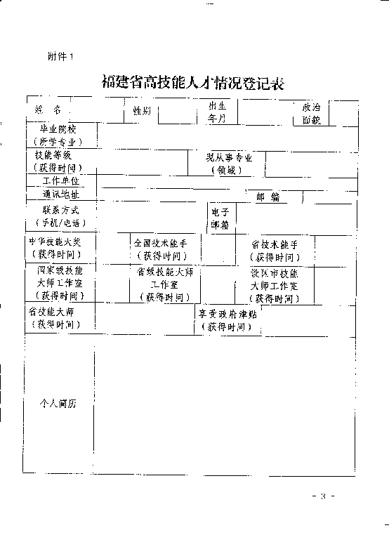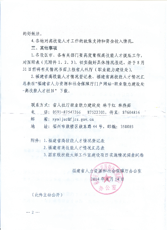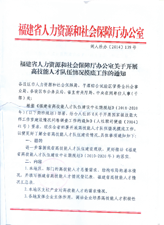 福建省人力資源社會保障廳辦公室關(guān)于開展高技能人才隊(duì)伍情況摸底工作的通知