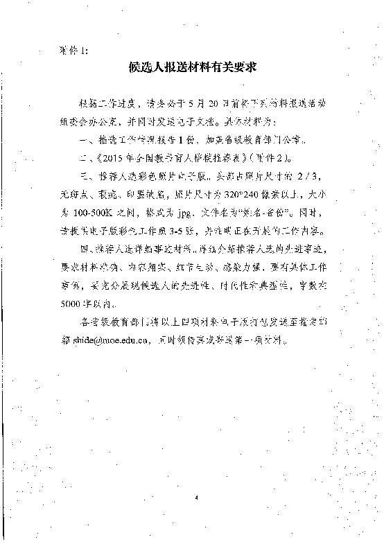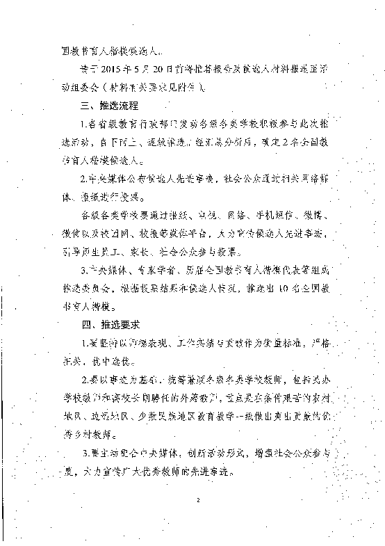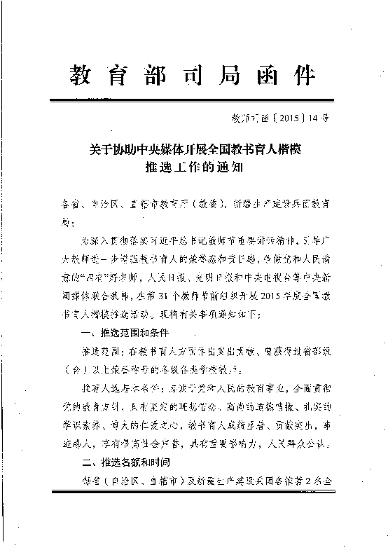 關(guān)于推薦2015年度 全國教書育人楷模人選的通知