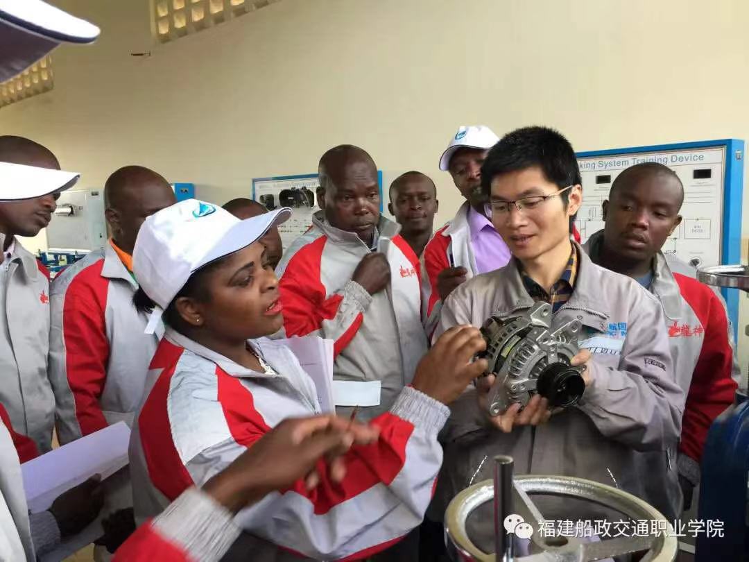 為幫助肯尼亞政府對本國大專院校的汽車維修專業(yè)進行升級建設(shè),福建船政交通職業(yè)學院從2018年開始為肯尼亞教育部制定汽修專業(yè)師資培訓方案,開發(fā)《汽車使用與維護》《汽車發(fā)動機構(gòu)造與維修》《汽車電氣系統(tǒng)檢修》等8門汽修專業(yè)核心課程英文版教材及其課程資源,并于2018年6月至12月先后派出5名優(yōu)秀教師赴肯尼亞,為肯尼亞教育部從全國13所院校選拔的20名教師開展專業(yè)培訓和教學指導。根據(jù)肯尼亞教育部大中專升級改造項目要求,汽車運用工程系老師運用自身豐富的教學經(jīng)驗和嫻熟的實踐技能,為肯尼亞教師量身定制培訓方案,培訓效果獲得肯尼亞參訓教師和教育部的一致好評!