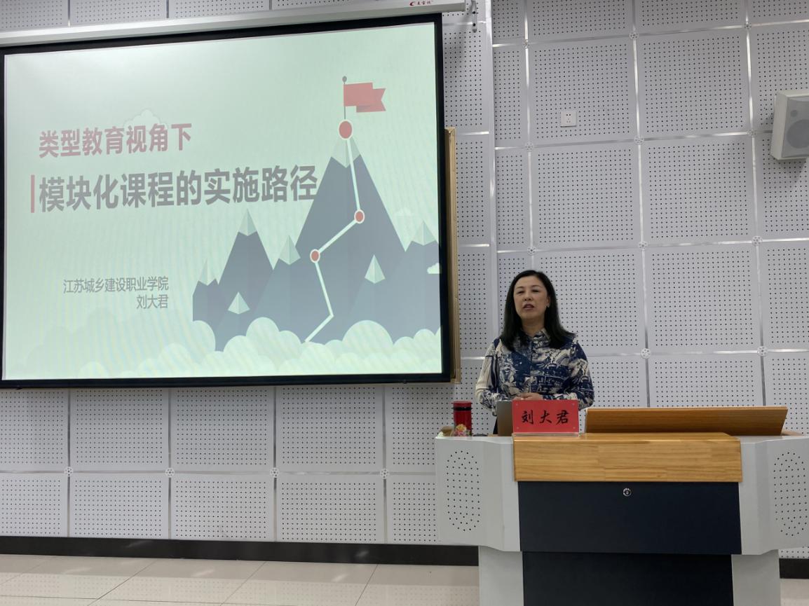江蘇城鄉(xiāng)建設職業(yè)學院教育技術與信息中心主任、全國教師教學能力大賽評審專家劉大君以《類型教育視角下模塊化課程的路徑》為題,從課程的模塊化改革、模塊化課程的設計、項目式教學的實施等三部分內容分析授課,結合教師教學能力大賽精典案例,給了我院教學創(chuàng)新團隊教師極大的啟發(fā)。