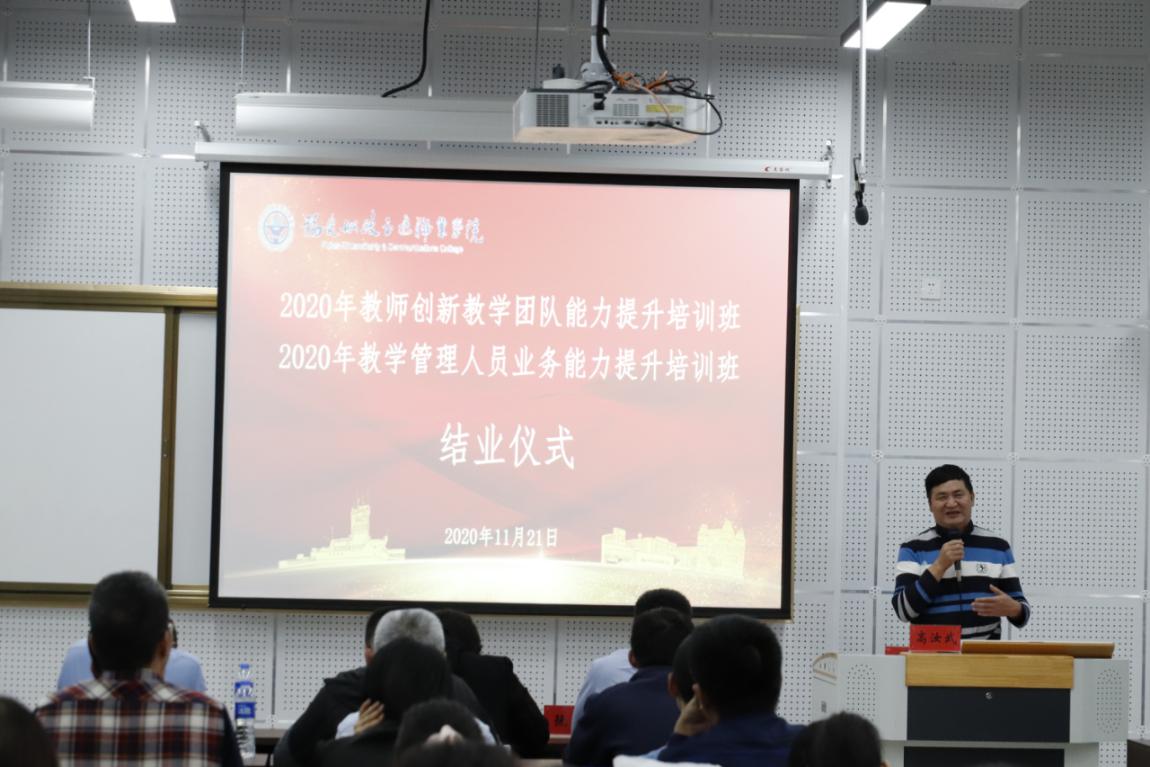 最后培訓班各組對此次培訓進行分組總結匯報,高汝武副校長做總結發(fā)言,他對此次培訓的效果充分肯定,對參加培訓的教師提出殷切要求。通過舉辦教學創(chuàng)新教學團隊能力提升培訓班,促進高水平結構化團隊建設,提高學?!半p師型”教師隊伍建設水平,深化學校教師、教材、教法“三教”改革,為“雙高建設”、模塊化教學改革、課程思政等師資建設提供有力支持。