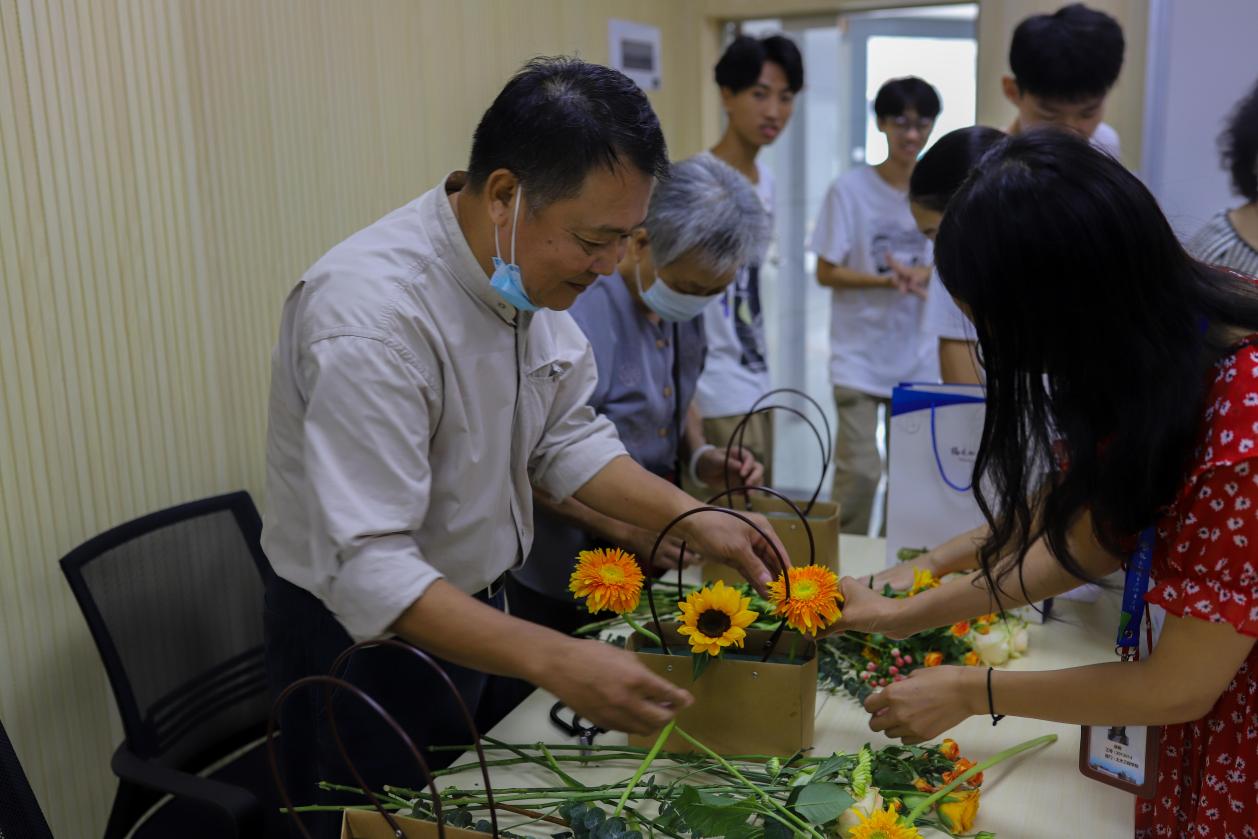 同時,“花開重陽”花藝課堂在淡淡幽幽的花香和老同志們的熱情期待中開課,在花藝老師講解花藝知識后,老同志們認真開始插花,相互之間還不忘交流意見,陸續(xù)創(chuàng)作出各種形態(tài),各有千秋的插花作品。悠悠花香,情誼綿長,老同志們對自己的作品愛不釋手,連連感謝這次活動帶來的美好體驗,體驗了插花的樂趣,陶冶了情操。