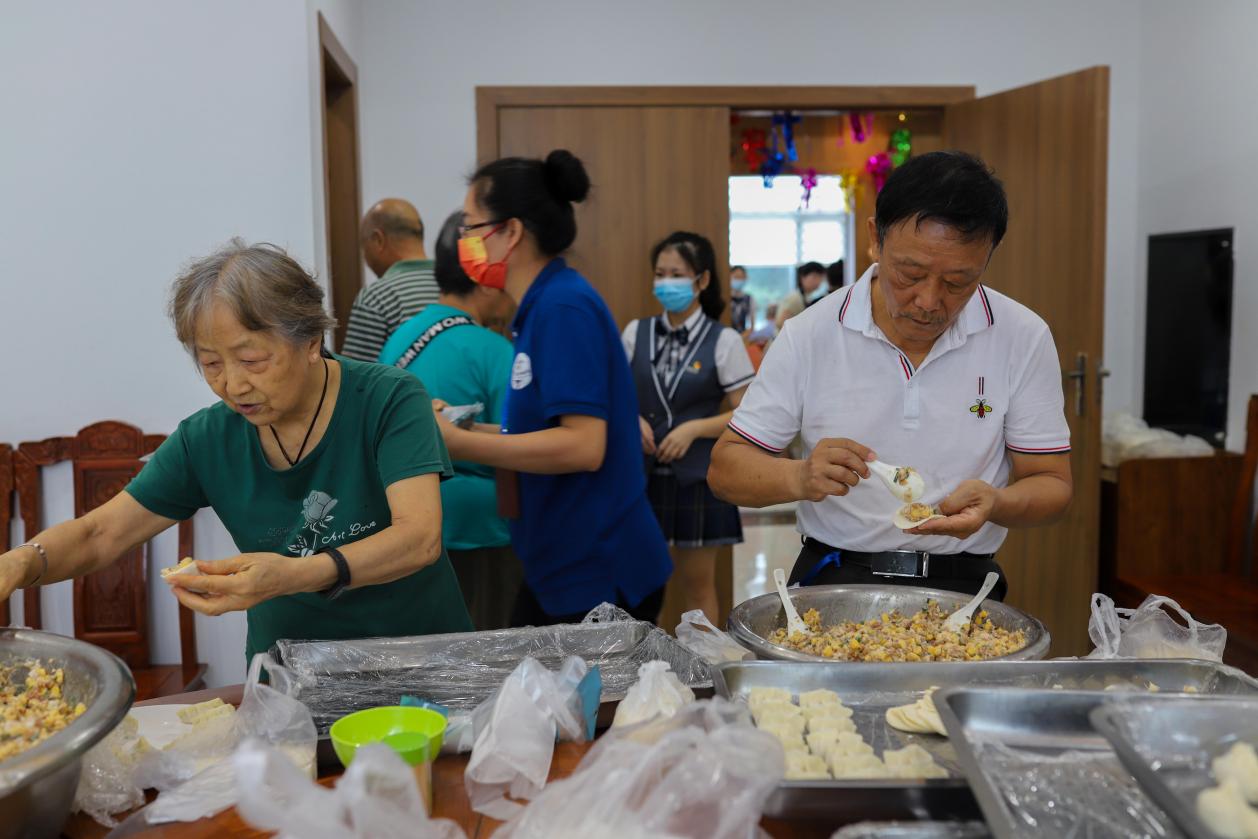 在最后的“重陽節(jié)節(jié)糕”活動中,老同志們一起制作重陽糕,包餃子,老同志們面帶笑容,邊捏餃子邊拉家常,歡聲笑語,一片其樂融融的節(jié)日氣氛。