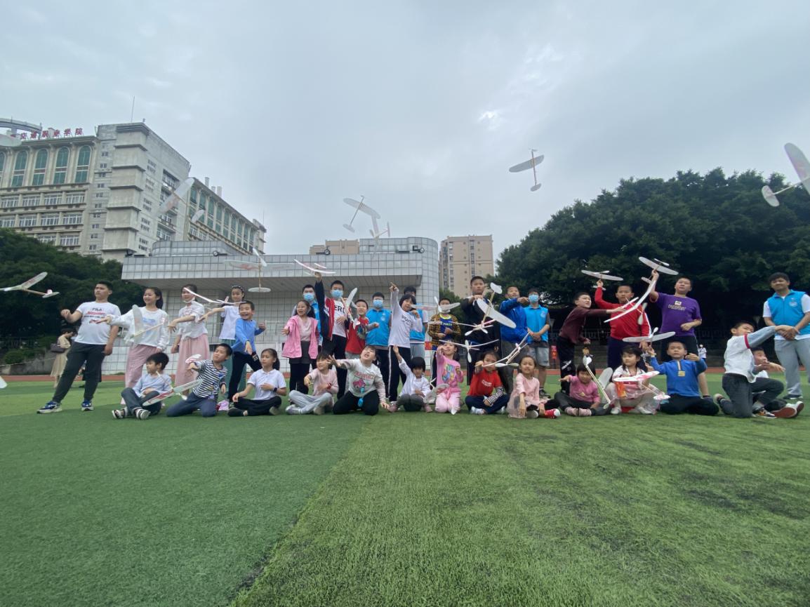 熏風(fēng)乍拂,化日方長。陽光下,孩子們在老師的指導(dǎo)下放飛自己親手制作的飛機航模,放飛夢想和希望。