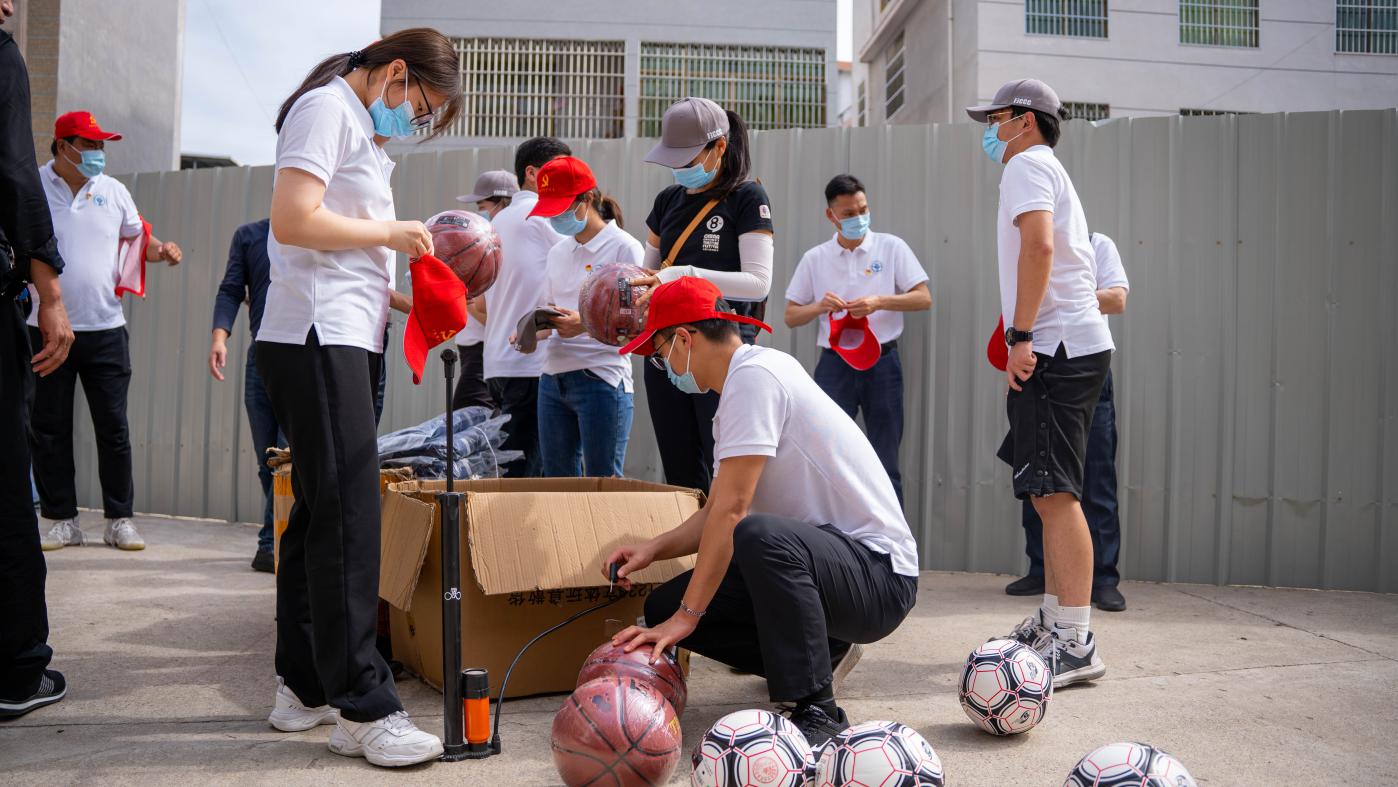 捐贈現(xiàn)場,學院為來自莒溪鎮(zhèn)山區(qū)的30名家庭困難的留守兒童發(fā)放新書包、新文具和兒童讀物,向莒溪鎮(zhèn)中心小學捐贈籃球和足球、乒乓球和羽毛球、鋼絲跳繩等運動器材。