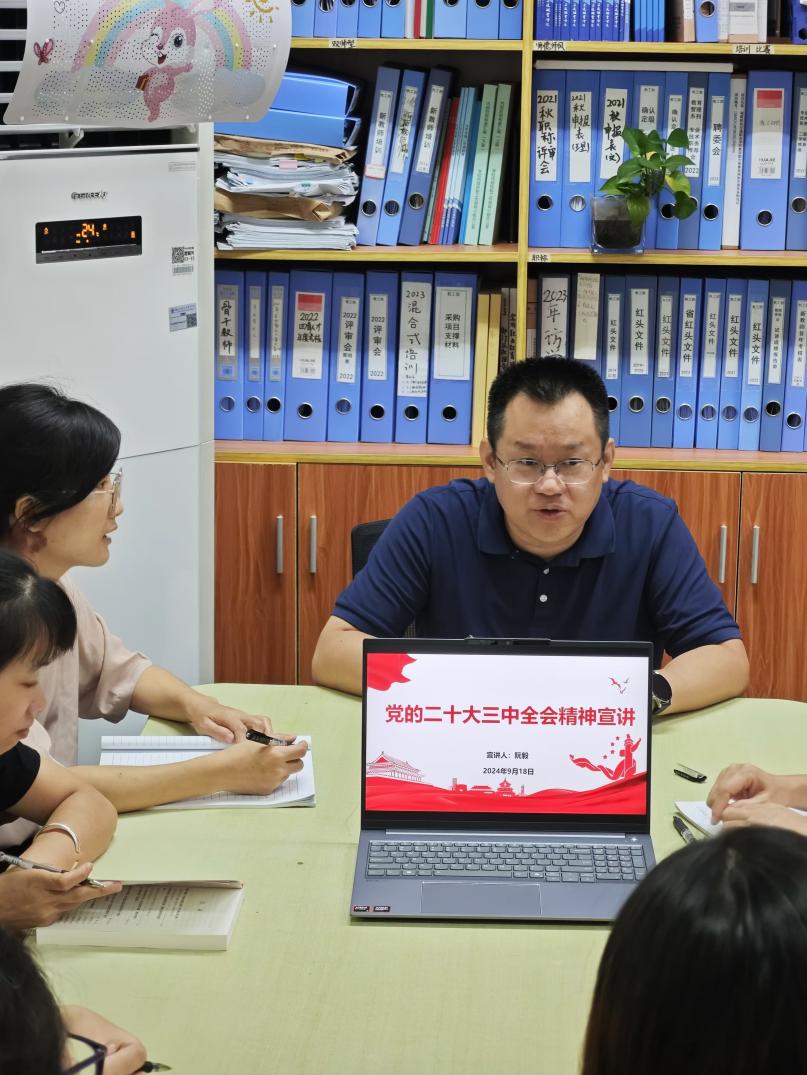 2024年9月18日上午,人事處及教師工作部全體黨員學(xué)習(xí)貫徹黨的二十屆三中全會(huì)精神宣講會(huì)在1號(hào)樓320舉行。宣講會(huì)由校黨支部書記阮毅同志主持。