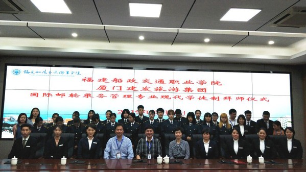 2019年5月5日下午,航海技術(shù)系在北區(qū)1號樓6樓會議室舉行國際郵輪乘務(wù)管理專業(yè)現(xiàn)代學(xué)徒制拜師儀式。“一拜師傅勤栽培,二拜師傅傳技藝,三拜師傅承師恩。”本次拜師儀式是現(xiàn)代學(xué)徒制試點(diǎn)的重要環(huán)節(jié),通過拜師儀式明確師徒關(guān)系、雙方職責(zé),為今后開展人才精準(zhǔn)培養(yǎng)打好基礎(chǔ)。學(xué)院副院長高汝武、廈門建發(fā)旅游集團(tuán)人事總監(jiān)李桃、航海技術(shù)系主任、郵輪乘務(wù)管理專業(yè)教師及2018級國際郵輪乘務(wù)管理專業(yè)21名學(xué)生參加了拜師儀式。