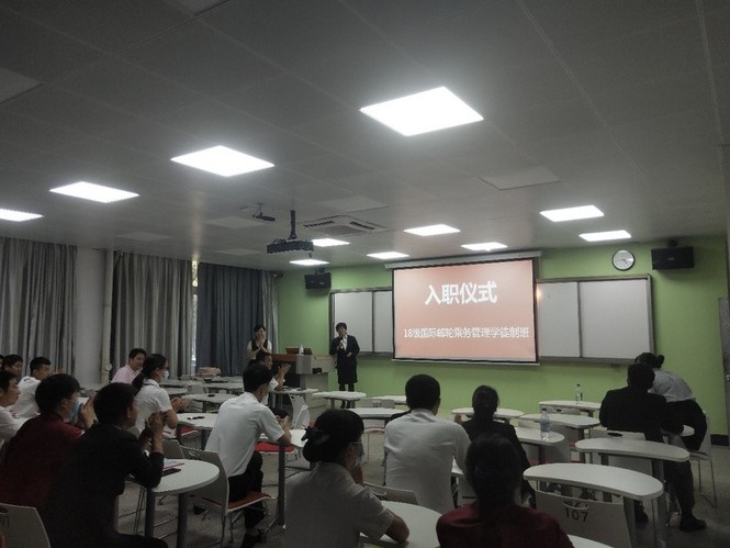 2020年6月15日下午,航海技術(shù)系與廈門建發(fā)旅游集團(tuán)在學(xué)院南區(qū)31號(hào)樓107教室舉行了國際郵輪乘務(wù)管理專業(yè)現(xiàn)代學(xué)徒制班的入職儀式。本次入職儀式是現(xiàn)代學(xué)徒制試點(diǎn)繼2019年5月5日拜師儀式后的又一重要環(huán)節(jié),通過入職儀式,師徒雙方一一對接,明確職責(zé),為入職后人才的精準(zhǔn)培養(yǎng)開啟了新篇章。航海技術(shù)系江明光主任、航海技術(shù)系伍小明書記、建發(fā)旅游集團(tuán)福州區(qū)域人力資源管理培訓(xùn)中心侯巧玲經(jīng)理等15位導(dǎo)師、國際郵輪乘務(wù)管理專業(yè)教研室主任、輔導(dǎo)員及2018級(jí)國際郵輪乘務(wù)管理專業(yè)學(xué)徒制班學(xué)生共同參加了入職儀式。