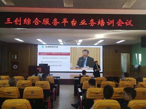 習(xí)近平總書記在全國教育大會(huì)強(qiáng)調(diào),要“以創(chuàng)造之教育培養(yǎng)創(chuàng)造之人才,以創(chuàng)造之人才造就創(chuàng)新之國家”,把創(chuàng)新創(chuàng)業(yè)教育貫穿于人才培養(yǎng)全過程,讓創(chuàng)新的基因根植于學(xué)生之中,培養(yǎng)造就更好適應(yīng)和引領(lǐng)創(chuàng)新發(fā)展的各類人才。因此,學(xué)校創(chuàng)新創(chuàng)業(yè)教育的體系構(gòu)建、創(chuàng)新創(chuàng)業(yè)師資培養(yǎng)就尤為迫切和重要。2020年10月28號(hào),由教務(wù)處、創(chuàng)新創(chuàng)業(yè)學(xué)院牽頭,組織召開三創(chuàng)平臺(tái)業(yè)務(wù)培訓(xùn)會(huì)議,分管創(chuàng)新創(chuàng)業(yè)的二級(jí)學(xué)院領(lǐng)導(dǎo)及聯(lián)系人、專業(yè)教研室主任、創(chuàng)新創(chuàng)業(yè)指導(dǎo)教師、大學(xué)生就業(yè)創(chuàng)業(yè)教研室教師參加會(huì)議。
