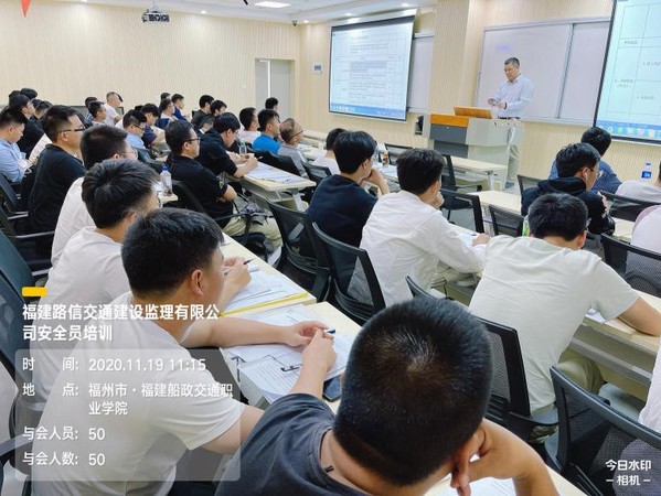 11月19-21日,培訓(xùn)學(xué)院組織開展福建路信交通建設(shè)監(jiān)理有限公司職工安全教育培訓(xùn)。本次培訓(xùn)為期3天,參加培訓(xùn)的學(xué)員50名。