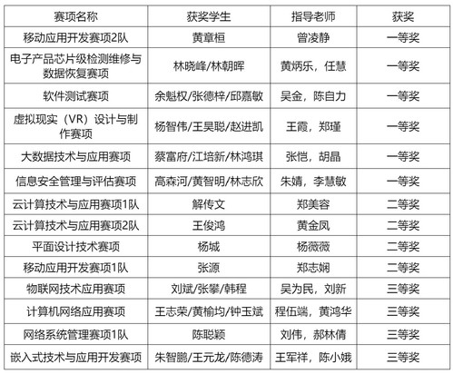 信息與智慧交通學(xué)院共派出15支代表隊(duì),與來(lái)自全省各地高職院校參賽隊(duì)伍同臺(tái)競(jìng)技,經(jīng)過(guò)激烈角逐。我院共榮獲福建省職業(yè)院校技能大賽一等獎(jiǎng)6個(gè)、二等獎(jiǎng)4個(gè)、三等獎(jiǎng)4個(gè)。