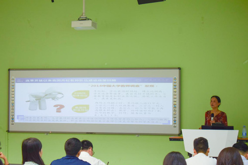 楊小霞副教授就新時(shí)代加強(qiáng)高校教師隊(duì)伍建設(shè)的若干思考展開講學(xué),從“深刻理解習(xí)近平總書記關(guān)于教師隊(duì)伍建設(shè)的重要論述”到“改革開放以來我國高校教師隊(duì)伍建設(shè)政策回顧”到“充分認(rèn)識加強(qiáng)高校教師隊(duì)伍建設(shè)的戰(zhàn)略背景”再到“進(jìn)一步明確新時(shí)代高校教師隊(duì)伍建設(shè)的突出重點(diǎn)”最后到“新時(shí)代高校教師隊(duì)伍建設(shè)的路徑選擇”,給老師們詳細(xì)講解了新時(shí)代加強(qiáng)高校教師隊(duì)伍建設(shè)應(yīng)當(dāng)如何進(jìn)行。楊小霞副教授還強(qiáng)調(diào):師者,要有仁愛之心,愛學(xué)生的情懷應(yīng)當(dāng)具備。