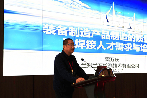 蘭州蘭石檢測技術(shù)有限公司執(zhí)行董事雷萬慶進行主題發(fā)言,以裝備制造產(chǎn)品制造的質(zhì)量控制及焊接人才需求與培養(yǎng)為主題,分析了裝備制造領(lǐng)域?qū)附訊徫蝗瞬判枨蠹肮┙o情況,并向院校代表提出,應(yīng)高度關(guān)注裝備制造企業(yè)對焊接技術(shù)人才需求的變化,不斷探索、持續(xù)改進,適應(yīng)新經(jīng)濟的發(fā)展,力爭在職業(yè)院校搖籃里,培養(yǎng)出一批既具備扎實專業(yè)基礎(chǔ)理論知識,又具備工程實踐和管理能力的復(fù)合型焊接技術(shù)人才。