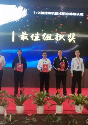 由于我院航海學(xué)院1+X特殊焊接技術(shù)試點積極配合中船艦客教育開展2020年度特殊焊接技術(shù)師資培訓(xùn)以及積極組織學(xué)生參與考證,取得較高通過率,高度重視考核組織工作,為培訓(xùn)工作順利進行提供多方面支持與保障,對1+X證書在全國推廣起到積極作用,分別授予“特殊貢獻獎”和“最佳組織獎”。航海學(xué)院黃建偉老師代表學(xué)院領(lǐng)獎。