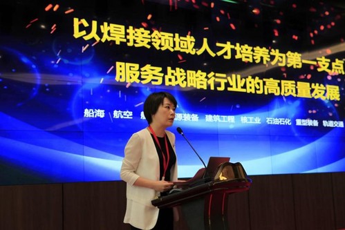中船教育科技(北京)有限公司新工科專業(yè)部部長李海霞對2020年1+X特殊焊接技術(shù)職業(yè)等級證書試點工作進行總結(jié)發(fā)言,對疫情期間參與試點工作的院校教師辛勞付出表示了誠摯的謝意,詳細(xì)介紹了成立特殊焊接技術(shù)職業(yè)等級認(rèn)證考評委員的相關(guān)工作情況,并向第一屆特殊焊接技術(shù)職業(yè)等級認(rèn)證考評委員會成員頒發(fā)聘書。