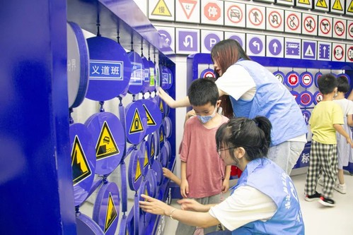 隨后,華南實(shí)驗(yàn)幼兒園的孩子們跟隨著老師和志愿者們來(lái)到南區(qū)操場(chǎng)的活動(dòng)現(xiàn)場(chǎng),進(jìn)行趣味十足的各項(xiàng)安全模塊的體驗(yàn)活動(dòng)。