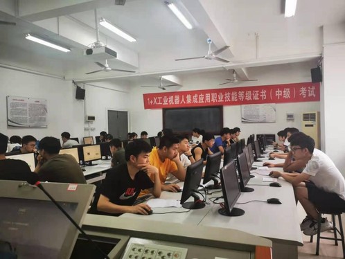 為貫徹落實(shí)《關(guān)于推進(jìn)“1+X”證書(shū)制度試點(diǎn)工作的指導(dǎo)意見(jiàn)》,機(jī)械與智能制造學(xué)院于2021年6月25日下午舉行1+X證書(shū)工業(yè)機(jī)器人集成應(yīng)用(中級(jí))理論考試。本次考證對(duì)象為工業(yè)機(jī)器人技術(shù)專(zhuān)業(yè)學(xué)生共計(jì)30人,考試全程電子監(jiān)控錄像,考試過(guò)程紀(jì)律嚴(yán)明,秩序良好,各類(lèi)數(shù)據(jù)備份有效,圓滿(mǎn)完成理論考試。