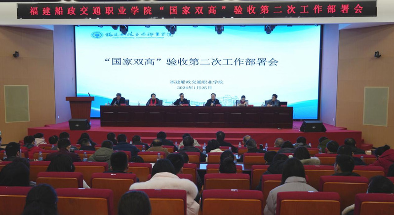 2024年1月25日下午,學(xué)校召開了“國家雙高”終期驗收第二次工作部署會,黨委書記陳宜大、院長陳錦輝出席會議并講話,學(xué)校領(lǐng)導(dǎo)班子成員出席會議;各職能部門負(fù)責(zé)人、分管副職,各二級學(xué)院黨政負(fù)責(zé)人、分管副職,雙高辦全體成員及雙高聯(lián)絡(luò)人參加了會議。雙高項目建設(shè)工作領(lǐng)導(dǎo)小組常務(wù)副組長高杰主持會議。