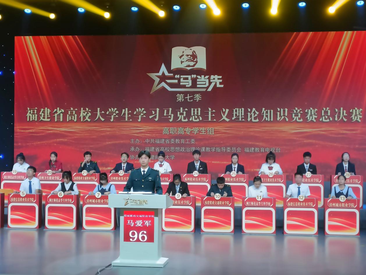 這是一次碰撞思想的知識競賽,這是一回淬火成金的青春較量,這是一場馬克思主義的思想盛宴。9月28日,第七季福建省高校大學生學習馬克思主義理論“一‘馬’當先”知識競賽總決賽在福建師范大學舉行。經(jīng)過激烈角逐,我院憑借扎實的知識功底和穩(wěn)健的現(xiàn)場發(fā)揮,榮獲高職高專學生組團體一等獎;選手馬愛軍以127分力壓群雄奪得高職高專學生組個人總冠軍。