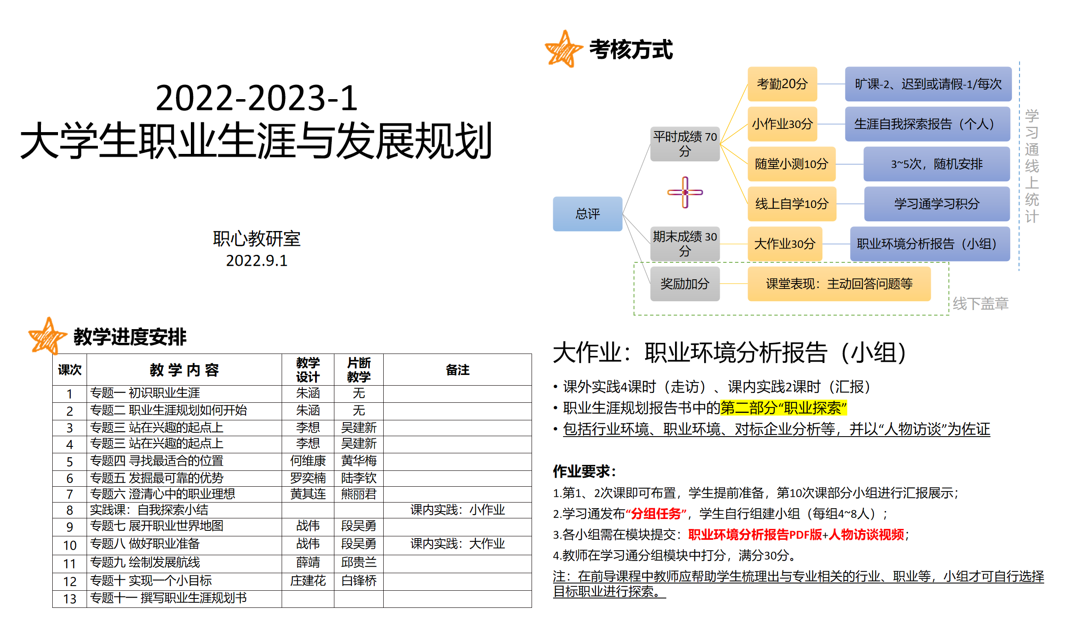 本次教研活動(dòng)的主題是《大學(xué)生職業(yè)生涯與發(fā)展規(guī)劃》課程新學(xué)期授課計(jì)劃與要求,以及專題一、二的教學(xué)設(shè)計(jì)與實(shí)施。
