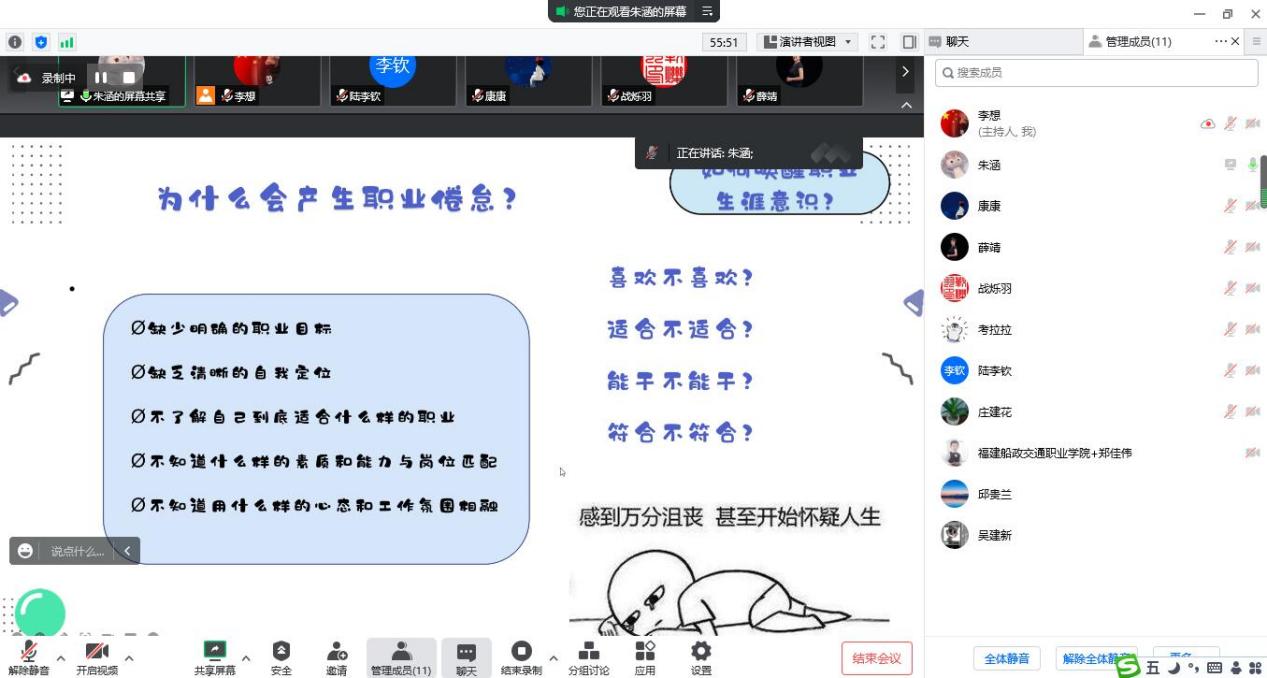 最后在場(chǎng)的專兼職教師對(duì)本模塊內(nèi)容的教學(xué)難點(diǎn)、疑問(wèn)開(kāi)展了經(jīng)驗(yàn)交流和討論,大家表示本次教研活動(dòng)形式新穎、效果突出,通過(guò)大家的交流和分享均收獲良多。同時(shí),本次線上會(huì)議通過(guò)信息化技術(shù)開(kāi)啟了現(xiàn)場(chǎng)錄制,方便老師們重復(fù)觀看,提升了教研活動(dòng)的質(zhì)量。