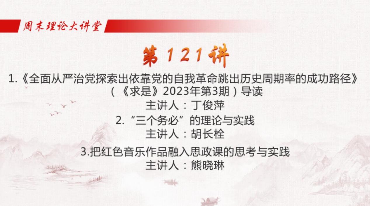 5月12日,由教育部主辦,全國(guó)高校思想政治理論課教師網(wǎng)絡(luò)集體備課平臺(tái)承辦的“周末理論大講堂”第121講開講。馬克思主義學(xué)院組織全體教師觀看學(xué)習(xí)。