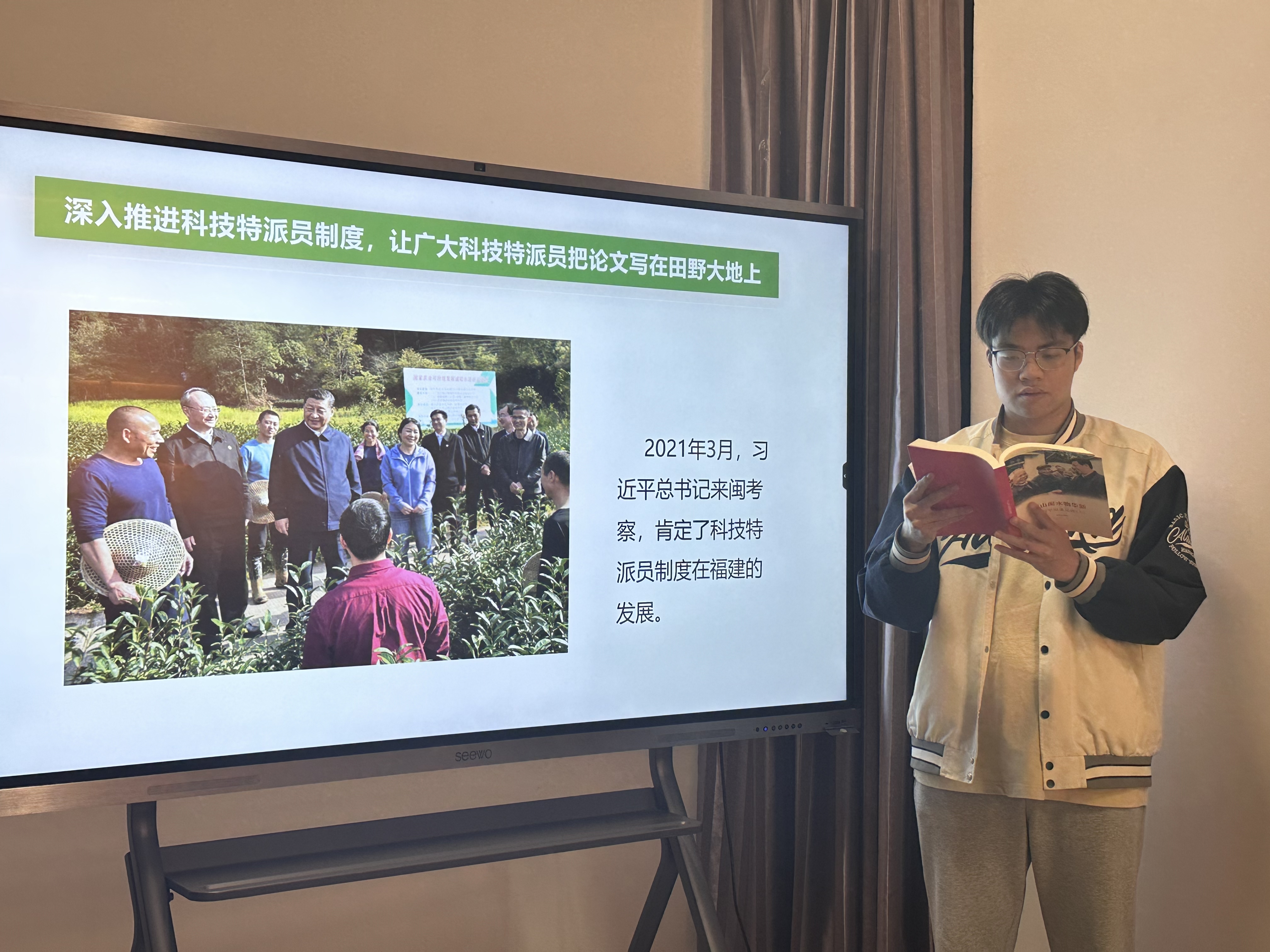今日,與老師和同學(xué)們一起閱讀了《閩山閩水物華新——習(xí)近平福建足跡》這本書,我覺得非常有意義。在閱讀習(xí)近平總書記在福建17年半的工作經(jīng)歷中,我覺得作為青年大學(xué)生,我們要不斷地加強(qiáng)自身專業(yè)技能和思想道德水平的提升,真正地將論文寫在田野大地上,努力成為有理想、敢擔(dān)當(dāng)、能吃苦、肯奮斗的新時(shí)代好青年。