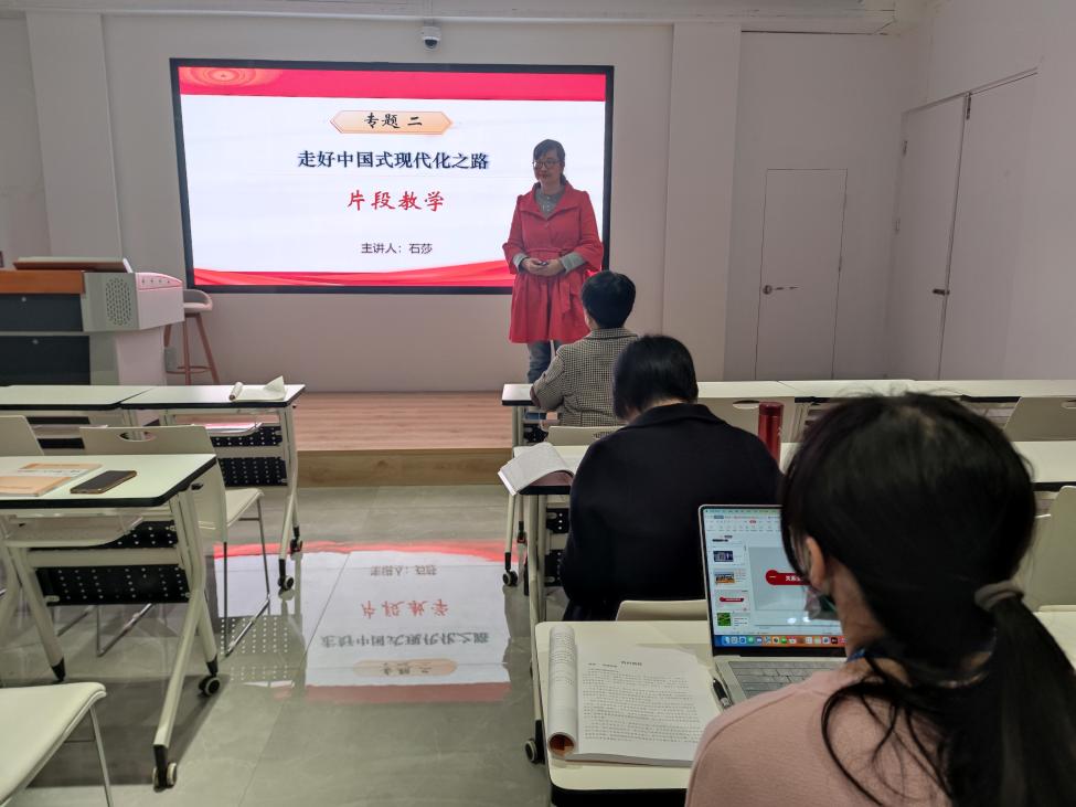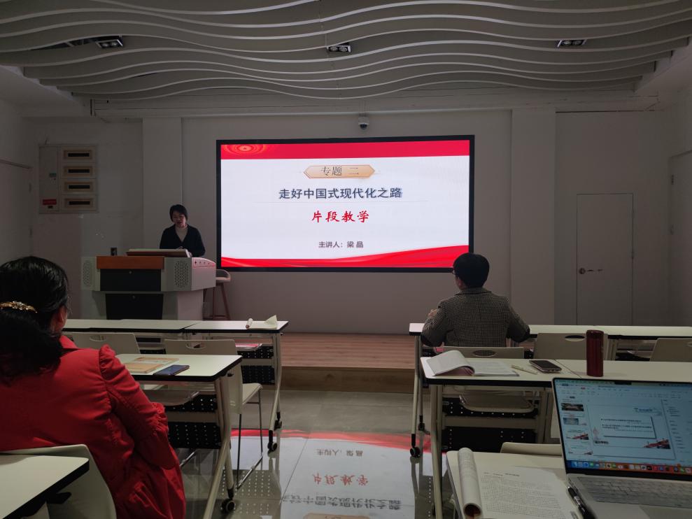 2023年3月9日,馬克思主義學(xué)院“形勢(shì)與政策”教研室在黨建館開(kāi)展了本學(xué)期“優(yōu)·美”教學(xué)工作坊第二次教研活動(dòng)。本次教研活動(dòng)圍繞“形勢(shì)與政策”課專題二“走好中國(guó)式現(xiàn)代化之路”展開(kāi),由嚴(yán)兵老師主講,石莎和梁晶老師進(jìn)行無(wú)生片段教學(xué),全體任課教師參加了教研活動(dòng)。