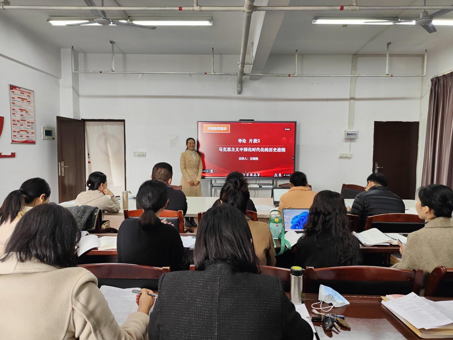 2023年2月19日,馬克思主義學(xué)院“毛澤東思想和中國(guó)特色社會(huì)主義理論體系概論”教研室全體專兼職教師在圖書(shū)館11樓1101室開(kāi)展了“優(yōu)·美”教學(xué)工作坊教研活動(dòng)。本次教研的內(nèi)容是本課程的“導(dǎo)言 馬克思主義中國(guó)化時(shí)代化的歷史進(jìn)程與理論成果”,由江冰老師擔(dān)任主備課人。
