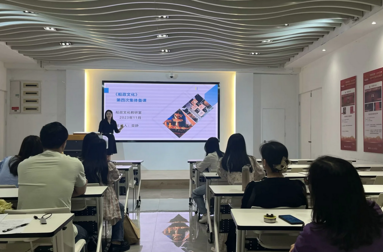 近日,船政文化教研室在黨建館開展第四次集體備課活動,此次備課主題是“職教彌香——船政文化助力職業(yè)教育發(fā)展”,包含主要的內容有:船政文化在職業(yè)教育發(fā)展中的時代意義、新時代職業(yè)教育的發(fā)展成果、新時代的船政學子如何弘揚船政精神。船政文化教研室欒靜老師從教學目的、教學重難點、案例選擇等方面進行了說課介紹。