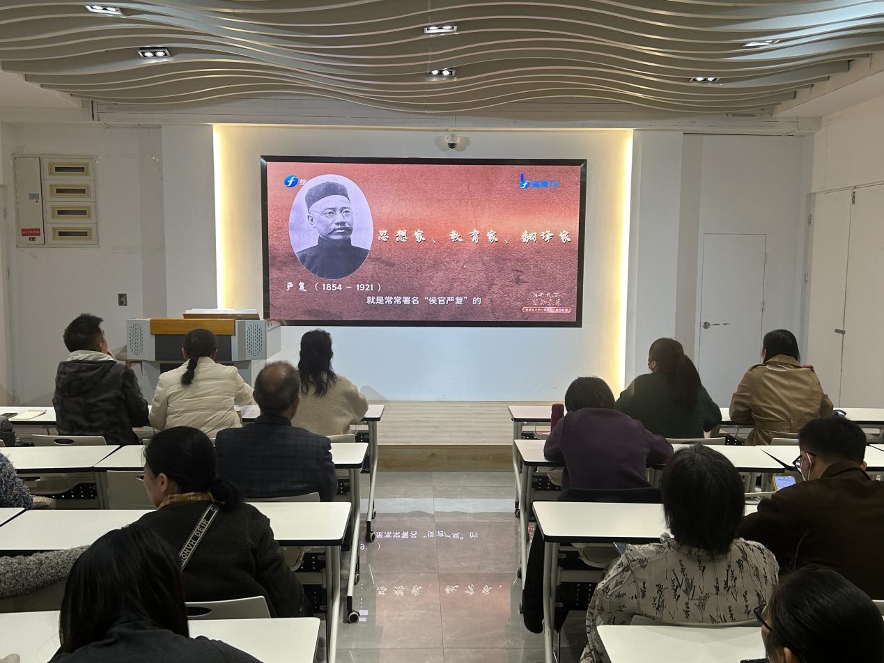 為深入學(xué)習(xí)貫徹習(xí)近平文化思想,紀(jì)念嚴(yán)復(fù)誕辰170周年,2024年1月2日,馬克思主義學(xué)院組織全體思政教師在鑒知樓時(shí)代大講堂開(kāi)展由省委宣傳部、省委教育工委和省教育廳聯(lián)合主辦的“百年天演 鑒知未來(lái)——福建省大中小學(xué)同上一堂思政課”主題學(xué)習(xí)活動(dòng)。