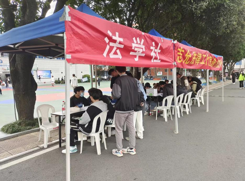 為深入開展憲法宣傳教育,大力弘揚憲法精神,厚植法治文化,引導(dǎo)廣大學(xué)生樹立尊崇憲法、學(xué)習(xí)憲法、遵守憲法、維護憲法、運用憲法的意識,12月6日,在馬克思主義學(xué)院的指導(dǎo)下,法學(xué)社在我校北區(qū)成功舉辦“憲在行動,與法同行”法律知識競答活動。