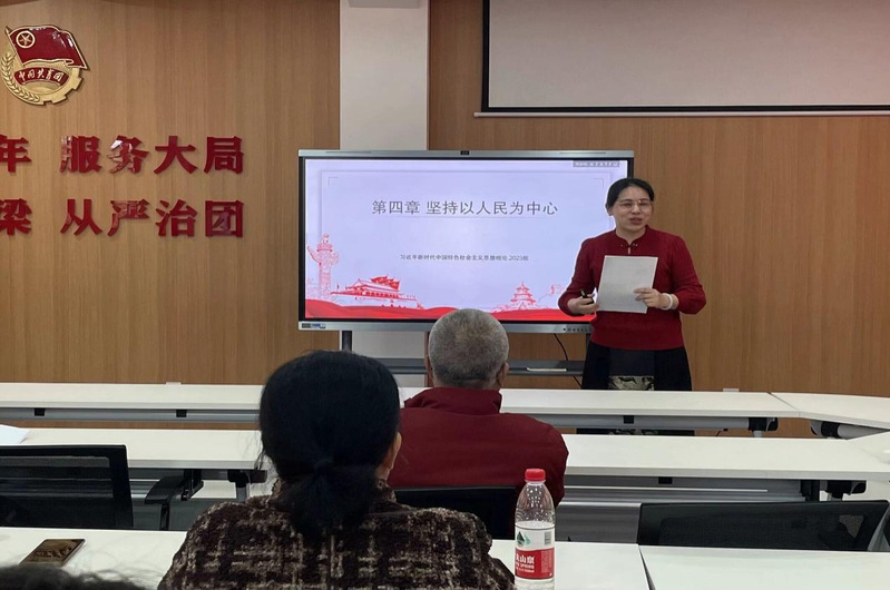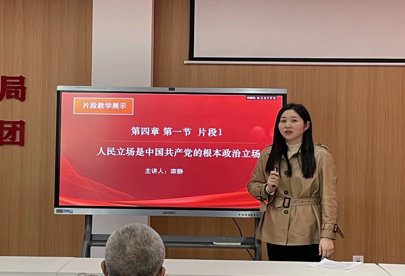 接著馬克思主義學(xué)院欒靜老師以《人民立場是中國共產(chǎn)黨的根本政治立場》為題,圍繞黨的使命與初心、黨與人民的血肉聯(lián)系,以及熱愛人民、尊重人民等三方面進(jìn)行片段教學(xué)展示。