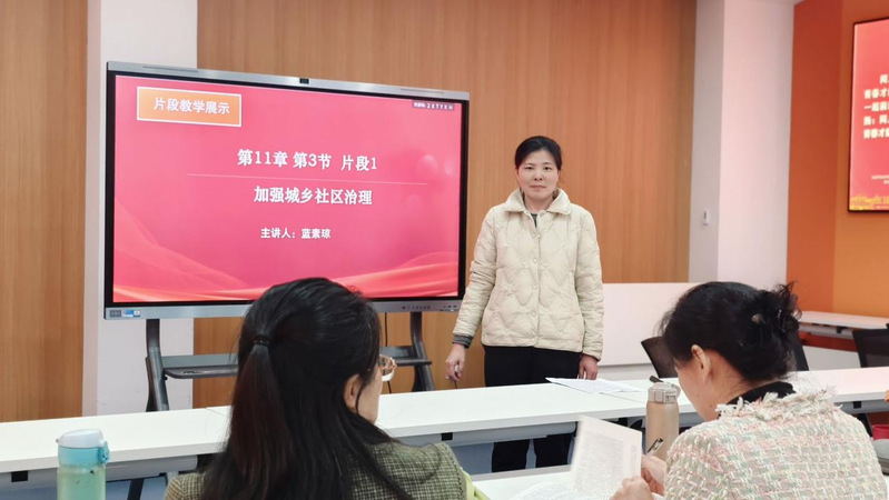 為更好地組織“習(xí)近平新時(shí)代中國(guó)特色社會(huì)主義思想概論”課程教學(xué),推動(dòng)習(xí)近平新時(shí)代中國(guó)特色社會(huì)主義思想進(jìn)教材、進(jìn)課堂、進(jìn)頭腦,2024年4月7日,馬克思主義學(xué)院習(xí)近平新時(shí)代中國(guó)特色社會(huì)主義思想概論教研室開展了本學(xué)期第十二次思政課教師“大練兵”暨“優(yōu)·美”教學(xué)工作坊集體備課活動(dòng)。活動(dòng)圍繞本課程的第十一章“ 以保障和改善民生為重點(diǎn)加強(qiáng)社會(huì)建設(shè)”進(jìn)行教學(xué)研究。本次集體備課由張瑞青老師擔(dān)任主講,范碧華與藍(lán)素瓊老師分別做片段教學(xué)展示。