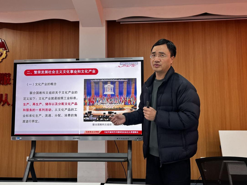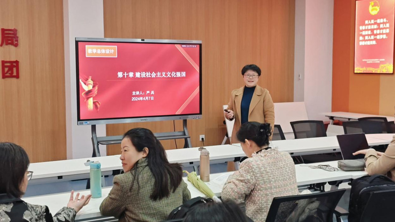 為更好地開展“習(xí)近平新時代中國特色社會主義思想概論”課程教學(xué),2024年4月7日,馬克思主義學(xué)院習(xí)近平新時代中國特色社會主義思想概論教研室開展了本學(xué)期第十一次思政課教師“大練兵”暨“優(yōu)·美”教學(xué)工作坊集體備課活動。圍繞本課程的第十章“建設(shè)社會主義文化強(qiáng)國 ”展開教學(xué)研究。本次集體備課由嚴(yán)兵老師擔(dān)任主講,張玉祥與張瑞青老師分別做片段教學(xué)展示。