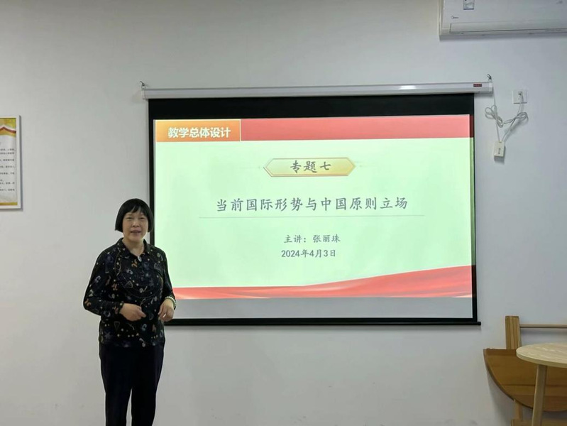 為更好地組織形勢與政策”課程教學(xué),推動習(xí)近平新時代中國特色社會主義思想進教材、進課堂、進頭腦,2024年43日,馬克思主義學(xué)形勢與政策教研室開展了本學(xué)期第次思政課教師“大練兵”暨“優(yōu)·美”教學(xué)工作坊集體備課活動。活動圍繞本課程的專題“當(dāng)前國際形勢與中國原則立場”進行教學(xué)研究。本次集體備課由張麗珠老師擔(dān)任主講,余夢莉老師做片段教學(xué)展示。