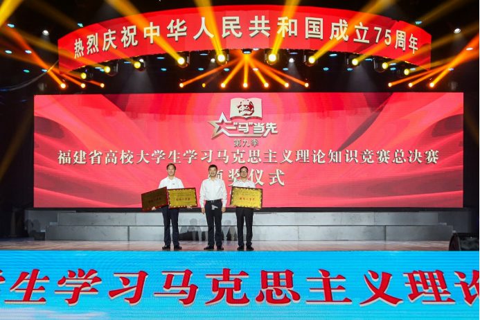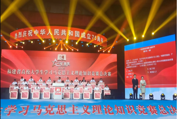 為熱烈慶祝中華人民共和國(guó)成立75周年,堅(jiān)持不懈用習(xí)近平新時(shí)代中國(guó)特色社會(huì)主義思想鑄魂育人,引導(dǎo)青年學(xué)生立報(bào)國(guó)強(qiáng)國(guó)大志向、做挺膺擔(dān)當(dāng)奮斗者,9月27日,由中共福建省委教育工委主辦,福建省高校思想政治理論課教學(xué)指導(dǎo)委員會(huì)、福建教育電視臺(tái)承辦的第九季福建省高校大學(xué)生學(xué)習(xí)馬克思主義理論“一‘馬’當(dāng)先”知識(shí)競(jìng)賽總決賽在福州大學(xué)旗山校區(qū)落下帷幕。我院黨委書記陳宜大攜師生代表參與活動(dòng)觀摩。