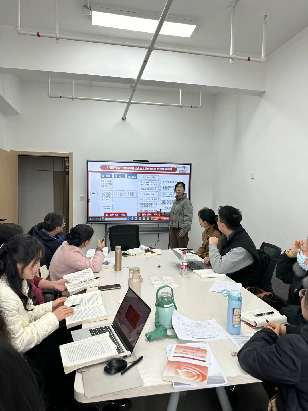 為更好地組織“習(xí)近平新時代中國特色社會主義思想概論”課程教學(xué),推動習(xí)近平新時代中國特色社會主義思想進教材、進課堂、進頭腦,推動思政課內(nèi)涵式發(fā)展,2月14日,馬克思主義學(xué)院習(xí)近平新時代中國特色社會主義思想概論教研室開展了本學(xué)期思政課教師 “優(yōu)·美”教學(xué)工作坊集體備課活動。教研活動圍繞《習(xí)近平新時代中國特色社會主義思想概論》課程導(dǎo)論及第一章開展集體備課。