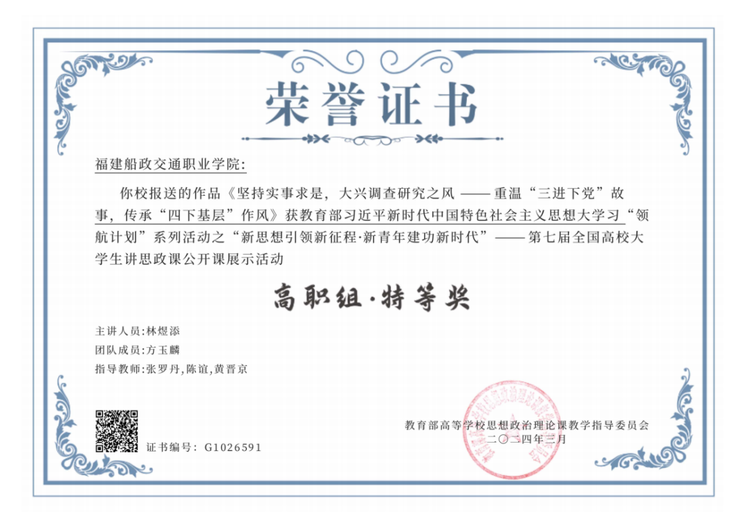 在第七屆高校大學生講思政課公共課展示活動中獲高職組特等獎