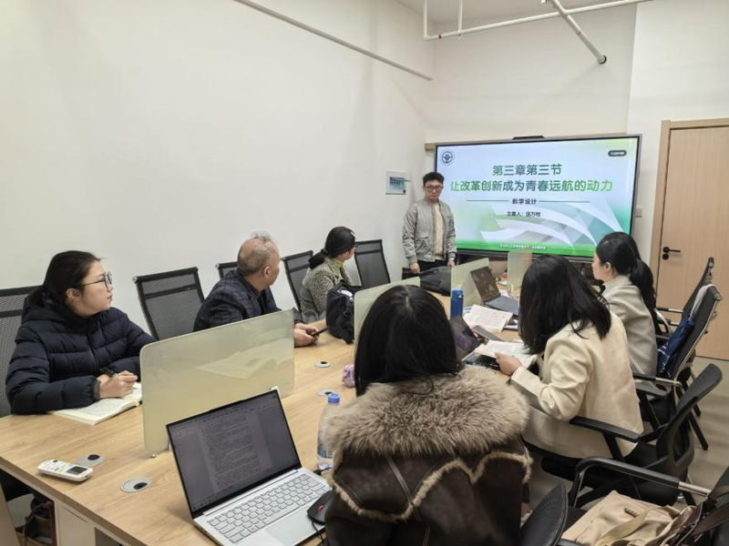 2025年12月16日,馬克思主義學(xué)院“思想道德與法治”教研室全體專兼職教師在圖書館11樓德法教研室開展了“優(yōu)·美”教學(xué)工作坊教研活動(dòng)。本次教研活動(dòng)圍繞第三章第三節(jié)“讓改革創(chuàng)新成為青春遠(yuǎn)航的動(dòng)力”進(jìn)行研討,由連萬桂老師進(jìn)行主備。本次備課旨在深化教學(xué)改革創(chuàng)新,強(qiáng)化思政課對(duì)青年學(xué)生創(chuàng)新精神的培育,提升教學(xué)的思想性、理論性與親和力,引導(dǎo)學(xué)生樹立改革創(chuàng)新意識(shí)。