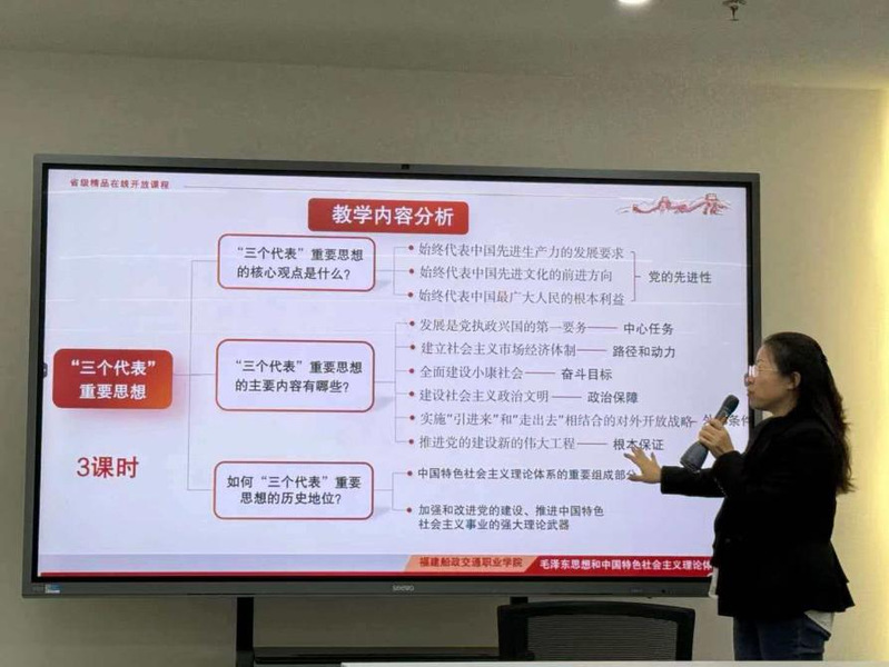 為了發(fā)揮團(tuán)隊(duì)合力,提升教學(xué)實(shí)效,福建船政交通職業(yè)學(xué)院馬克思主義學(xué)院于2025年11月26日圍繞《毛澤東思想和中國(guó)特色社會(huì)主義理論體系概論》課程第七章“三個(gè)代表重要思想”開(kāi)展了專題集體備課會(huì)。本次活動(dòng)由主備課人劉麗萍老師領(lǐng)學(xué)主講,全體授課教師齊聚一堂,開(kāi)展了深入而富有成效的教學(xué)研討。
