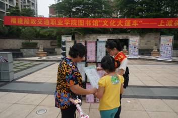借著“世界讀書日”來臨之際,福建船政交通職業(yè)學(xué)院圖書館第六屆 “書韻滿校園 知識助遠(yuǎn)航” 讀書月特別活動召開了,開展了一系列“文化大篷車”系列活動。圖書館“文化大篷車”系列活動有走進(jìn)福州市上渡街道江南社區(qū),走進(jìn)福州市倉山區(qū)第四中心小學(xué)等為社區(qū)居民服務(wù)系列活動,活動展出《我們的文字》大型圖片展、廉政圖片展、大篷車系列活動書簽設(shè)計(jì)比賽獲獎(jiǎng)作品,圖書館支部黨員同志及大篷車義務(wù)導(dǎo)讀員們現(xiàn)場為社區(qū)居民辦理“福建船政交通學(xué)院圖書館社會讀者借閱證”?;顒舆€收集了大量的閑置圖書,將用于圖書館文化大篷車后期開展的閱讀活動,同時(shí)東南網(wǎng)對此次活動也進(jìn)行了報(bào)道。
