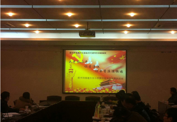 1月9日學院開展了基層黨建特色創(chuàng)新案例展示評比活動。我館選送的案例《大手拉小手 讓愛漂流 讓書香溢滿校——圖書館援建齊安小學圖書角及黨員結對幫扶活動》在此次比賽中榮獲二等獎的好成績。